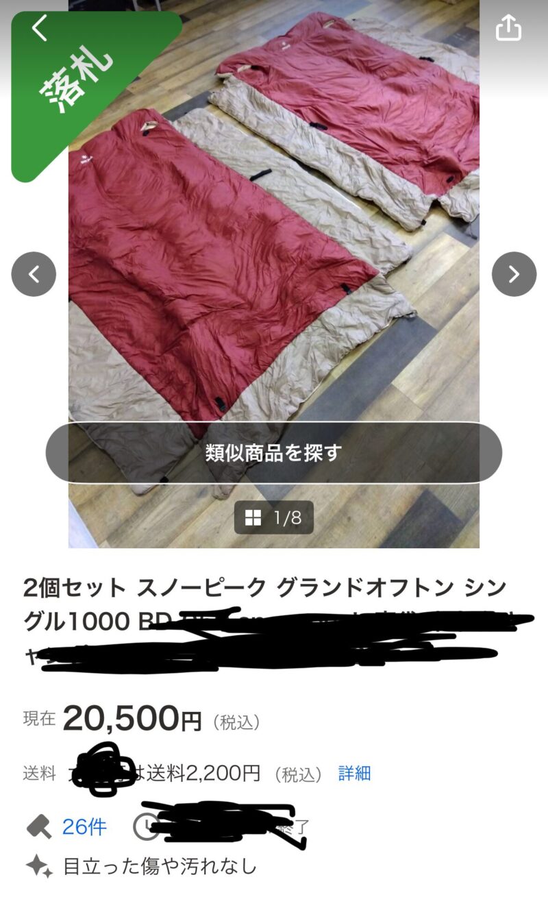 そんな折、ヤフオクを眺めていた僕は、とんでもない掘り出し物を見つけてしまいました。スノーピークの高級シュラフ、「グランドオフトン」です。しかも、新品では到底手が出ないような、破格の値段で。