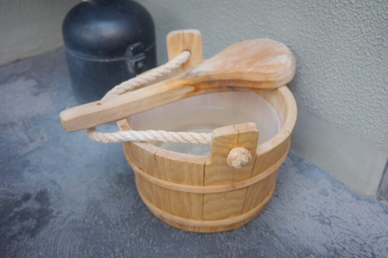 石へのロウリュが「一瞬の爆発力」なら、ウォーリュは「じわじわ効く持続力」。木材が水分を吸い込み、それをゆっくり放出することで、室内の湿度が安定。しかも、木の香りが蒸気とともに広がる。まさに森の中で呼吸しているような感覚になれます。